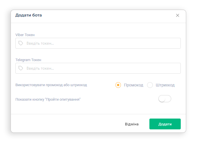 Або “Штрихкод” - у Вашого клієнта буде власний штрихкод, який можна буде просканувати для ідентифікації.